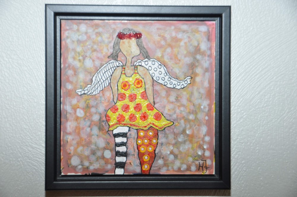 Galleri-HJ maleri i en sort ramme str. 19x19.