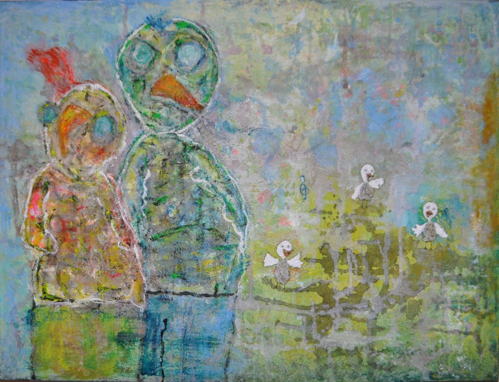 Kigger på fugle. Galleri-HJ maleri str. 100x100.
