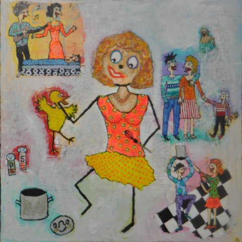 Følg med. Galleri-HJ maleri str. 50x50.