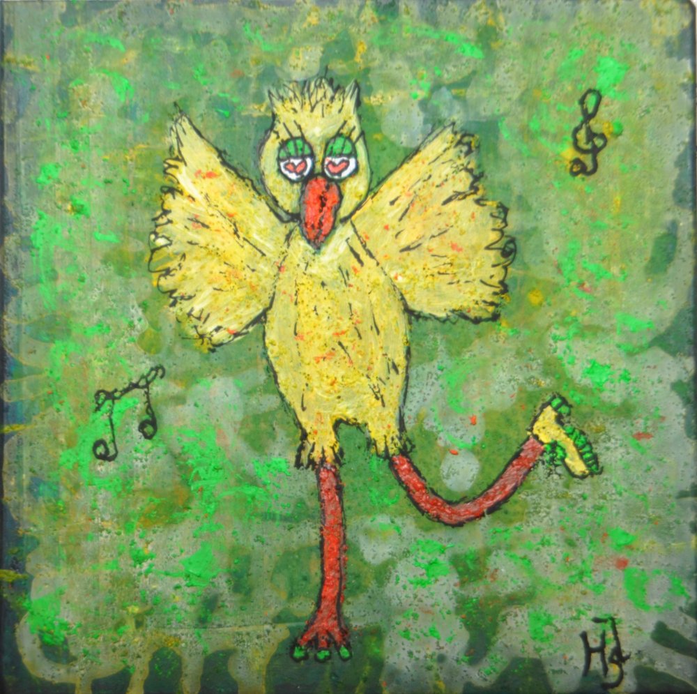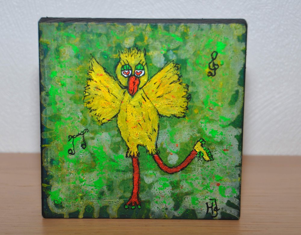 Galleri-HJ maleri på en træklods str. 14x14, som både kan hænge og stå.