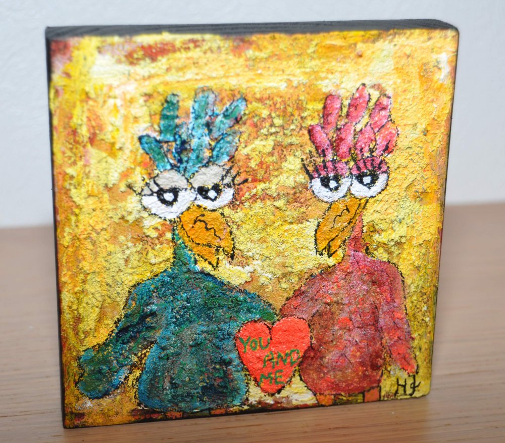Galleri-HJ maleri på en træklods str. 14x14, som både kan hænge og stå.
